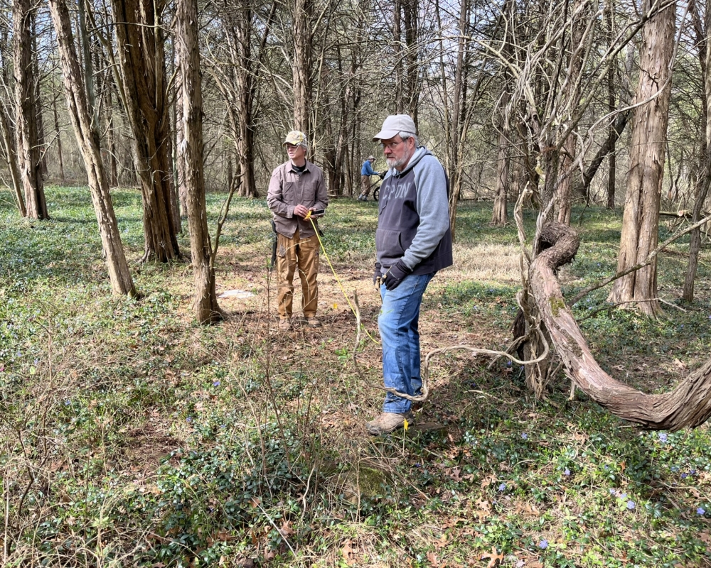 A prominent feature on our Chapter’s land is the Willard Log Cabin. This archaeological site includes the log cabin, a storage building and a spring house. It offers a view of agricultural life during the late 1800’s. Prior to the Civil War, a one-room log cabin was home to an overseer. He supervised the operation of Piney Hill Farm which was worked by enslaved people. Piney Hill Farm was established in 1825. Before that, the first record of property development on our land was made in 1745. For more information see the