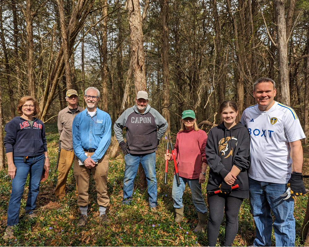 The 1865 Martenet Map shows that the Conelley Plantation was located in the general area of our Northeast Woods. So, the County contacted the Chapter when it began trying to locate lost slave cemeteries. They wanted to search our Northeast Woods. The Archaeology Committee assisted them. We escorted them to the Vinca Site on two occasions. The result as that we found no evidence of this area being a cemetery. But that was actually unexpected by the experts. The dog handler remarked: “I’ve never seen so much Vinca and no graves!”.